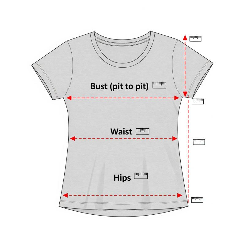 To find your perfect fit, lay your favorite top flat on a table and follow these simple steps: