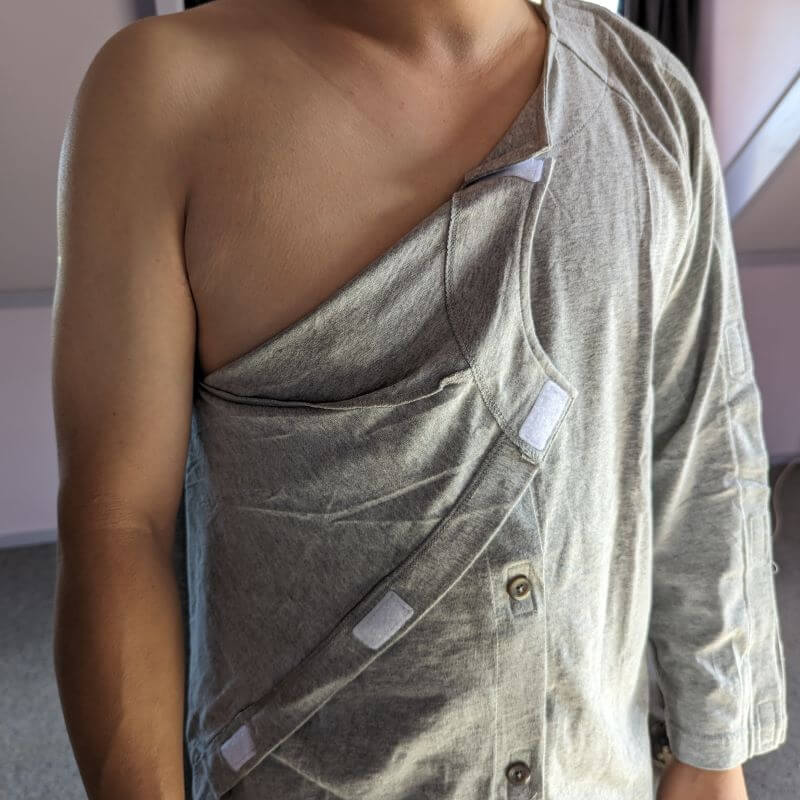 Classic long-sleeve, easy-to-open velcros on the shoulders, side, and arms (FULL TEAR AWAY). Dress with ease and comfort while focusing on your recovery. Decrease in discomfort due to easy access in all areas.