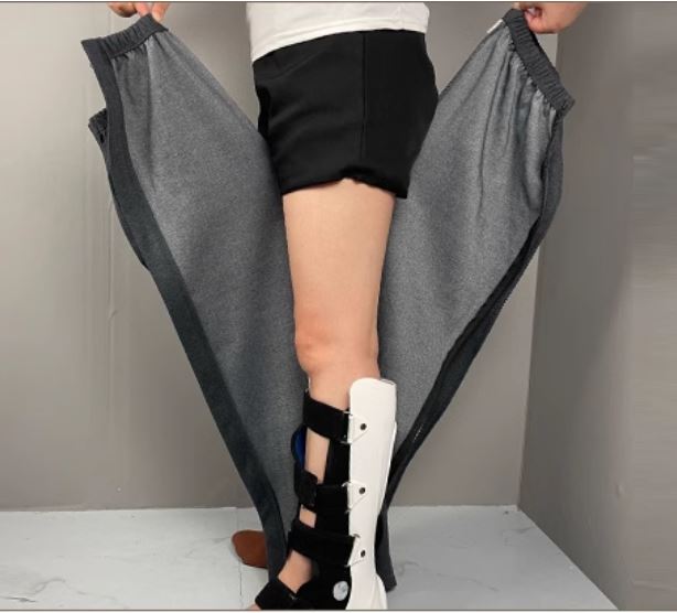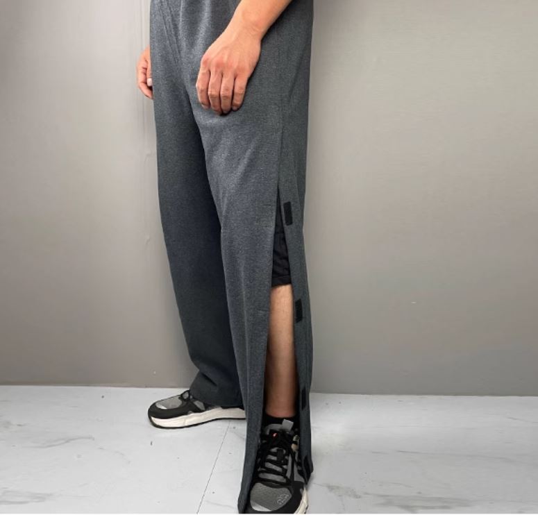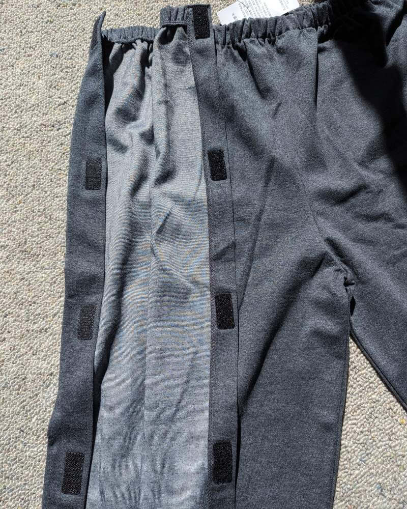 Opens from waist to hem with either zippers or Velcro, allowing for quick changes, medical access, or dressing without the need to step into the pants.
