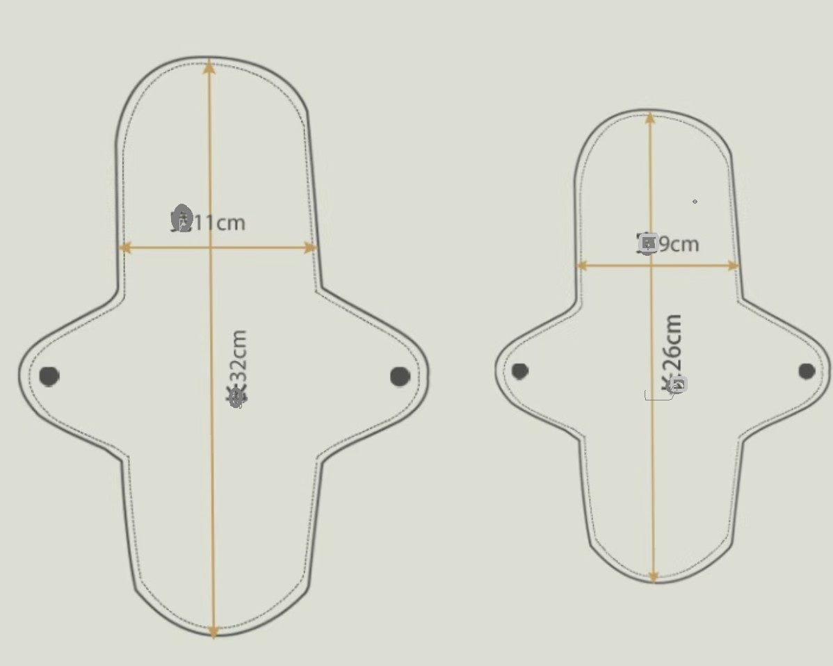2) Medium pad: approx. 26 cm × 9 cm, great for daytime wear and lighter leaks